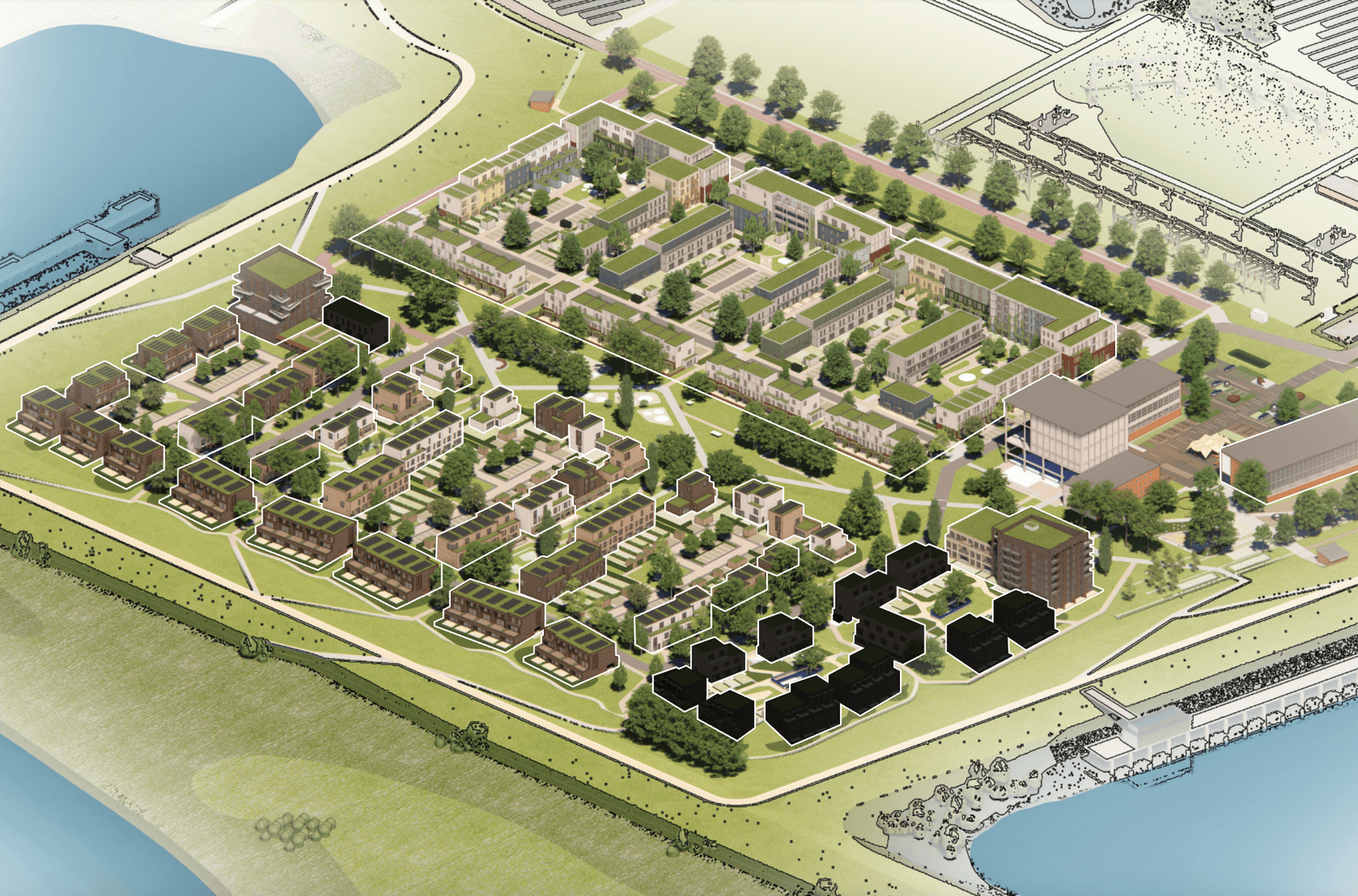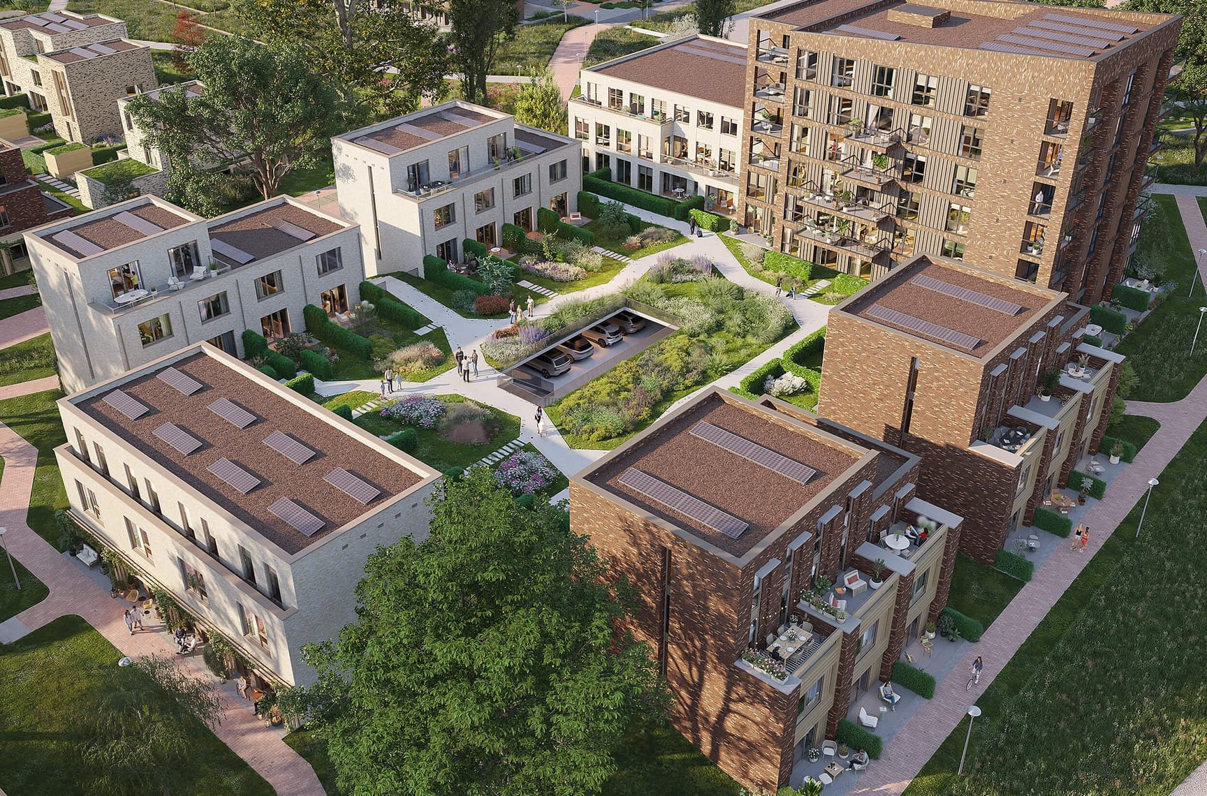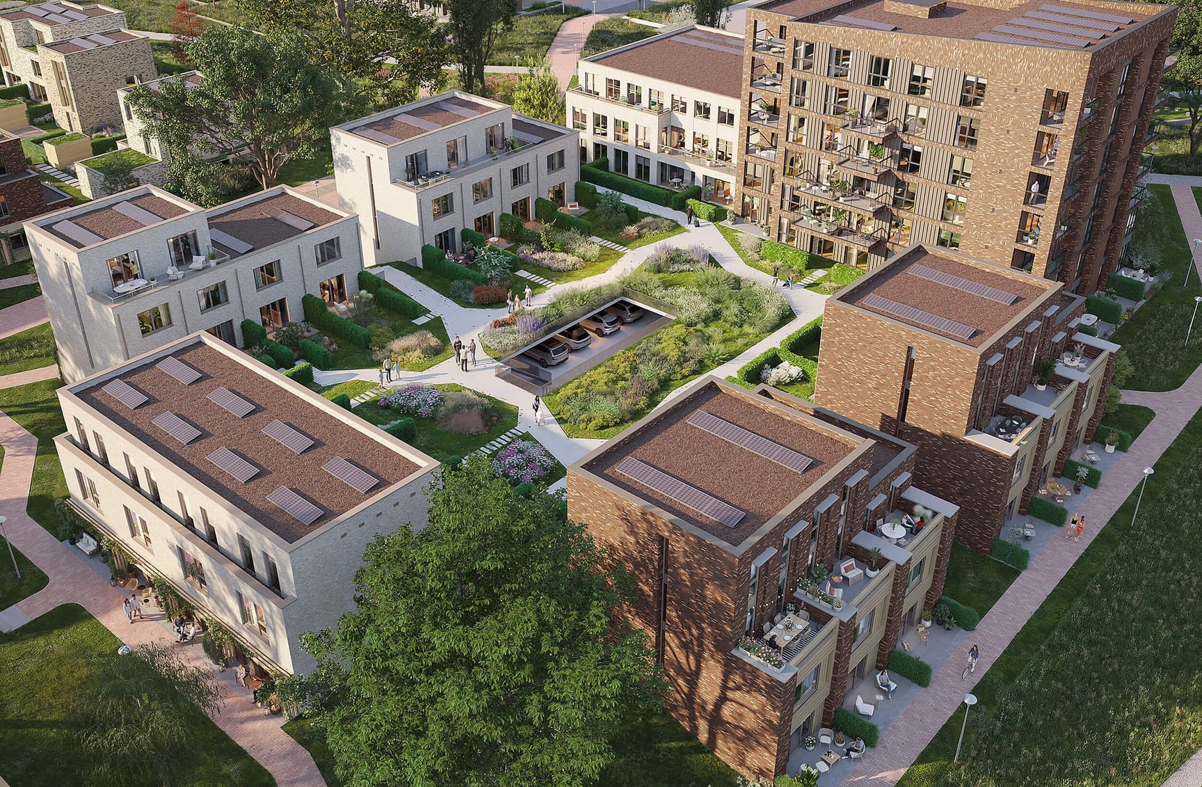 Elke woning heeft een eigen terras of patio met veel privacy. Kinderen spelen veilig op het autovrije dek en bewoners ontmoeten elkaar in het groen. De woonoppervlakte varieert van circa 109 tot 206 m².
